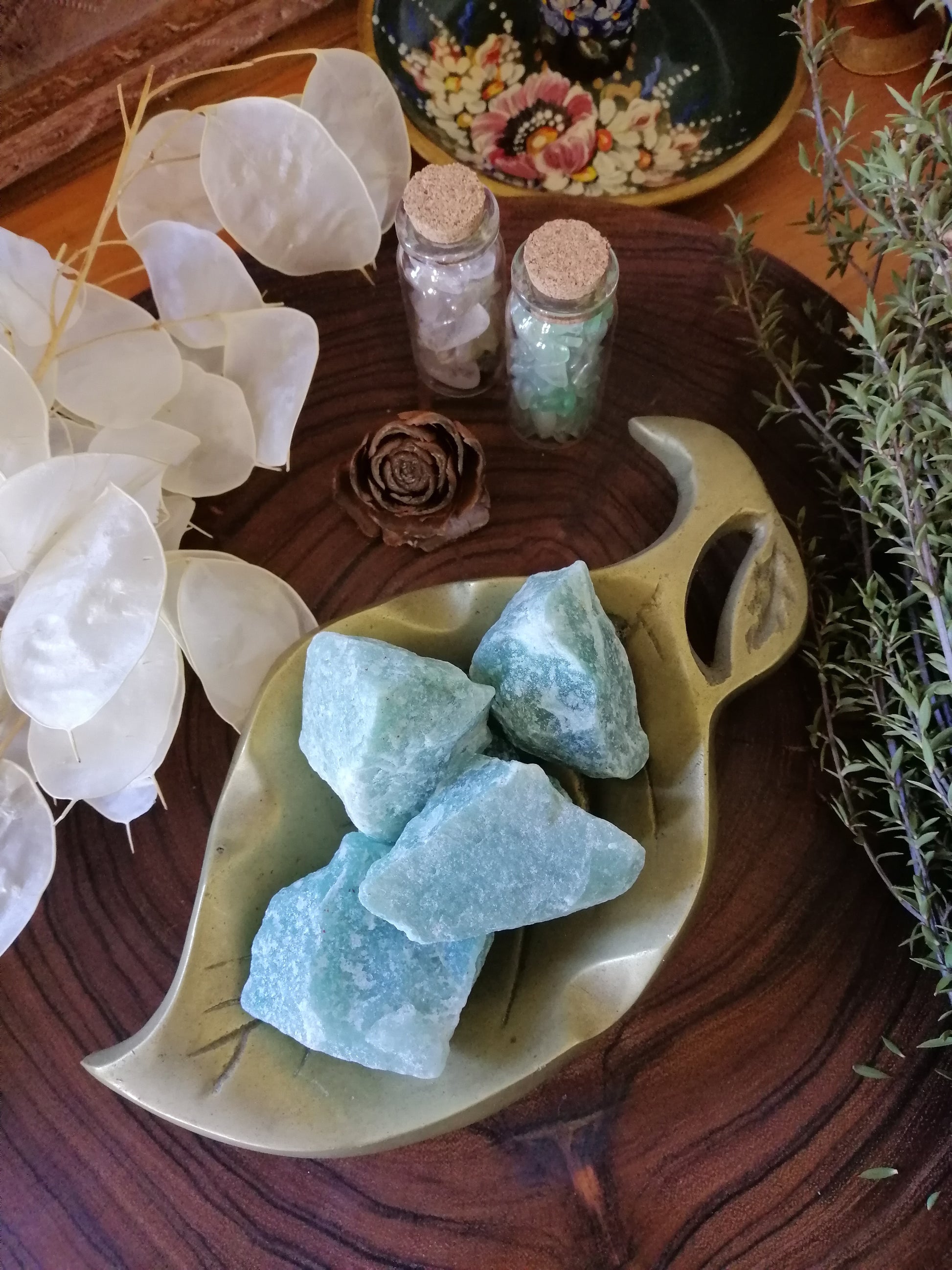 A Green Aventurine natural/rough stone measuring around 4-5cm will be intuitively selected for you. Please note this listing is for one natural stone only.